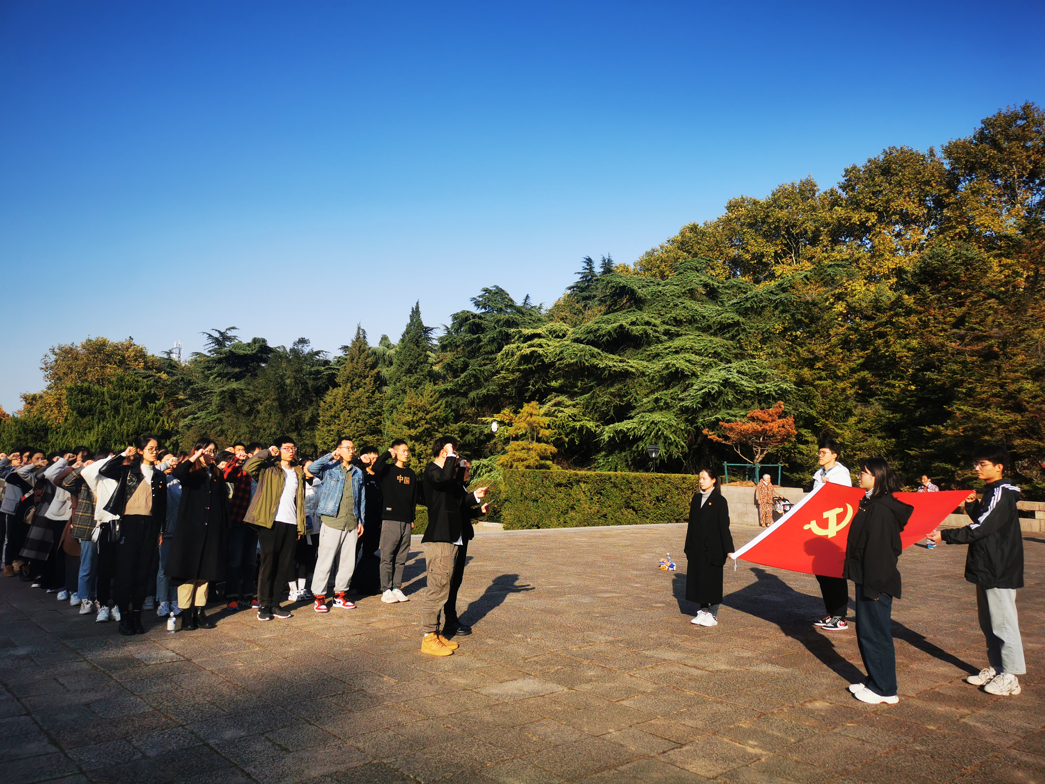 新发展党员培训班学员来到雨花台烈士陵园,瞻仰革命英烈、进行入党宣誓。我校“小雨滴”志愿者为学员们提供志愿讲解。
