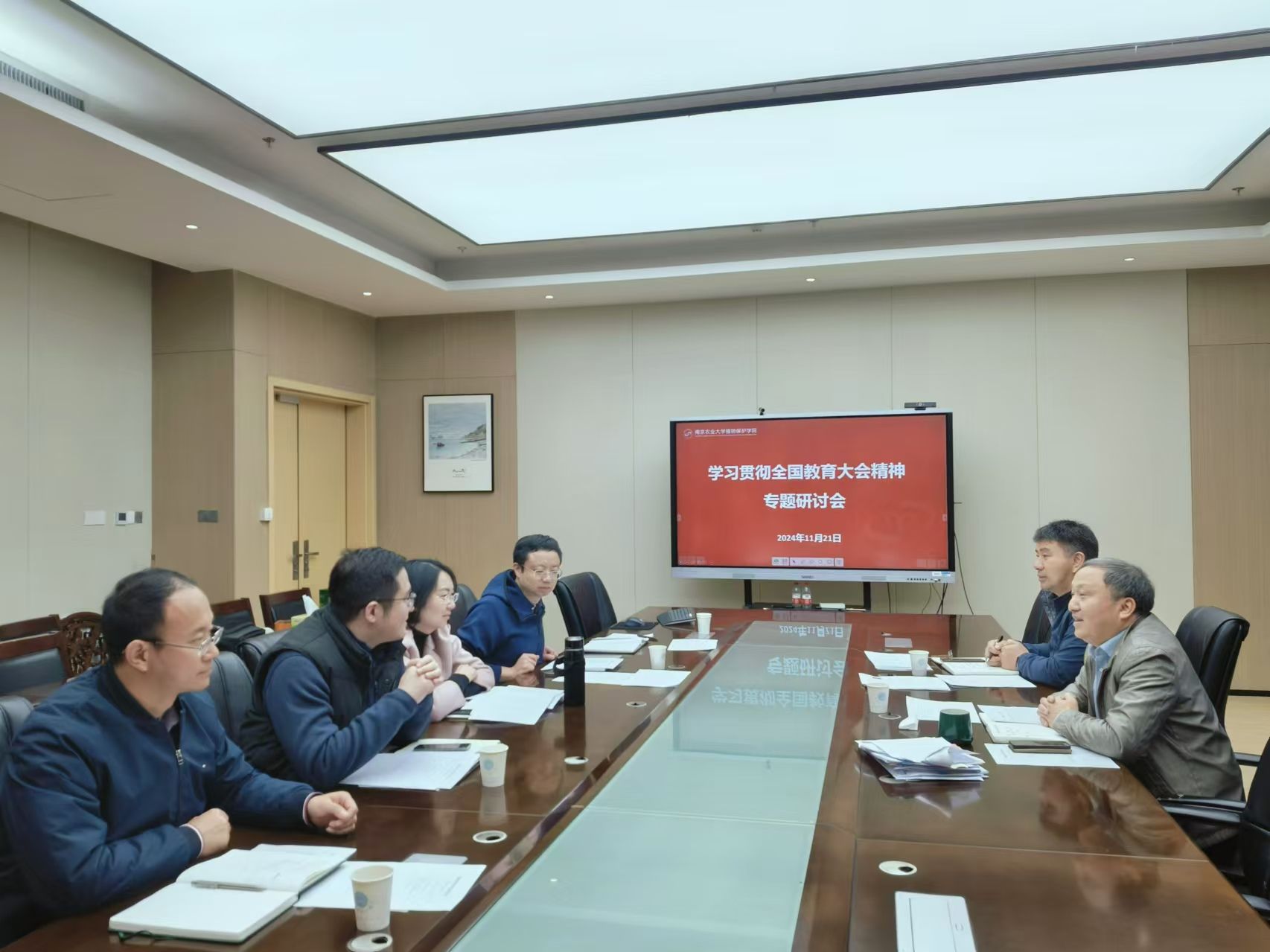 大家一致认为,这次全国教育大会是对新时代新征程加快建设教育强国作出动员部署的一次重要会议,在我国教育发展史上具有十分重要的里程碑意义。习近平总书记在大会上发表的重要讲话站在党和国家事业发展全局的战略高度,全面总结新时代教育事业取得的历史性成就、发生的格局性变化,系统阐释教育强国的科学内涵和基本路径,深刻阐述教育强国建设要正确处理好的重大关系,系统部署全面推进教育强国建设的战略任务和重大举措,具有很强的政治性、思想性、指导性,是指导新时代新征程教育工作的纲领性文献,为建设教育强国指明了前进方向、提供了根本遵循。大家一致表示,要深入学习贯彻习近平总书记重要讲话和全国教育大会精神,牢牢把握教育的政治属性、人民属性、战略属性,紧密结合学院和各自分管领域工作实际,务实功、出实招、求实效,切实把习近平总书记重要讲话和教育大会精神转化为推动学院高质量发展的思路、方法、举措,为教育强国建设作出新的更大贡献。