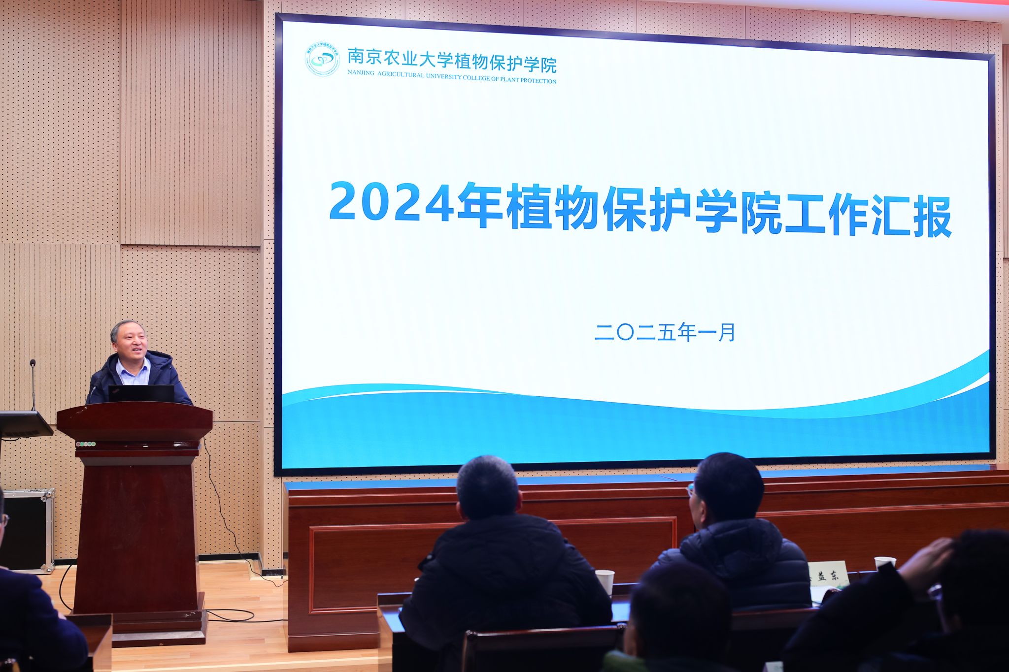 院长张正光代表学院作2024年度工作总结。一年来,学院深入学习贯彻习近平新时代中国特色社会主义思想,坚持党的全面领导,以立德树人为根本,以强农兴农为己任,锚定目标考核任务,坚定不移推动学院高质量发展。学院圆满完成了从卫岗校区到滨江校区的整体搬迁,成功申报农林生物安全全国重点实验室,科研到账经费达 1.09亿元,在全院师生的共同努力下,各项工作都取得了较好的成绩。