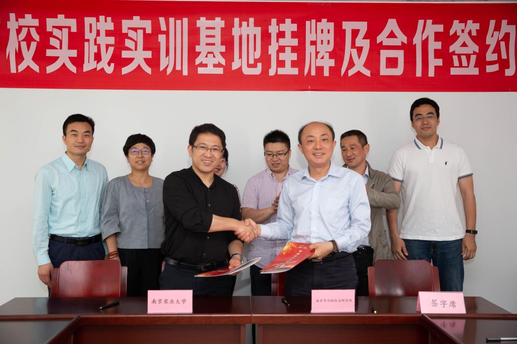 蒋宏所长与学院代表签署了战略合作协议,并进行了两个共建基地的揭牌仪式。随后,学院代表应邀参观了南京白蚁防治科研科普培训基地科普展厅、科普长廊、养虫室、实验室及野外试验场地等。