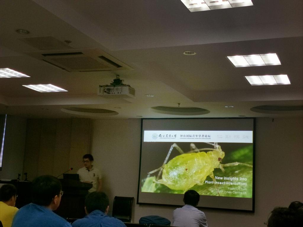 刘逊亮博士,2012年开始在亚利桑那州大学从事博士后研究,在报告中,他主要讲解了植物孢囊线虫与寄主植物相互作用的分子机制。陈亚州博士,2014年开始在英国约翰英纳斯中心从事博士后研究,主要研究昆虫与植物的相互作用,以及昆虫对寄主植物的适应性机制。在他的报告中,以蚜虫为例,分享植物与昆虫相互作用的新见解。