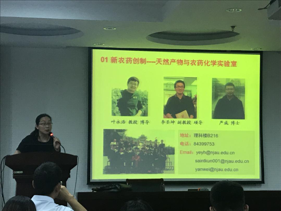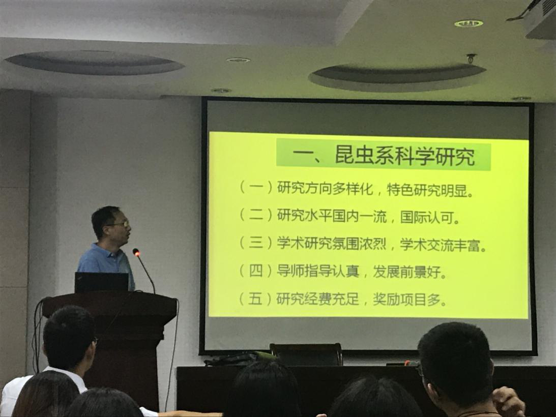 简介、2019届深造(保研和考研)政策简介两项议程。首先由植物病理学系教授窦道龙、昆虫学系教授王备新、农药系教授高聪芬老师从不同的学科研究方向为大家进行了简单的介绍,突显出番号鸽
