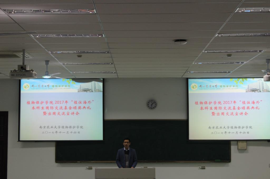 在介绍了各位领导嘉宾后,首先由黄绍华宣读“植往海外”本科生国际交流基金的通知及获奖学生名单,