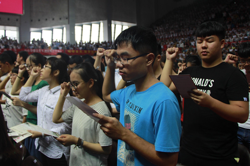 在校体育馆召开了17级新生典礼。在这样一个焕发生机的早晨,17级的学子们聆听着周光宏校长的教诲,至此,他们的大学生活正式拉开帷幕。