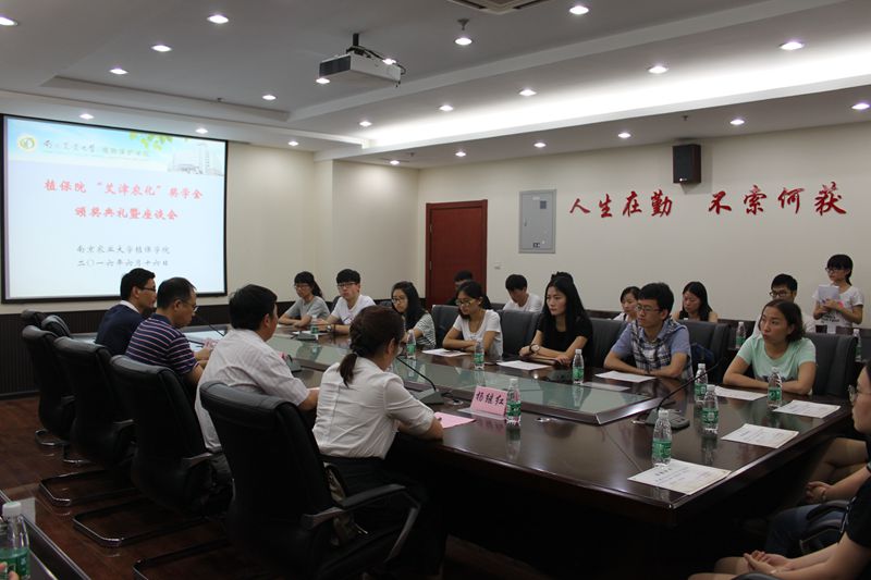 党委书记吴益东教授,江苏艾津农化有限责任公司副总经理屈继辉先生、人事经理杨继红女士出席本次座谈会,会议由番号鸽