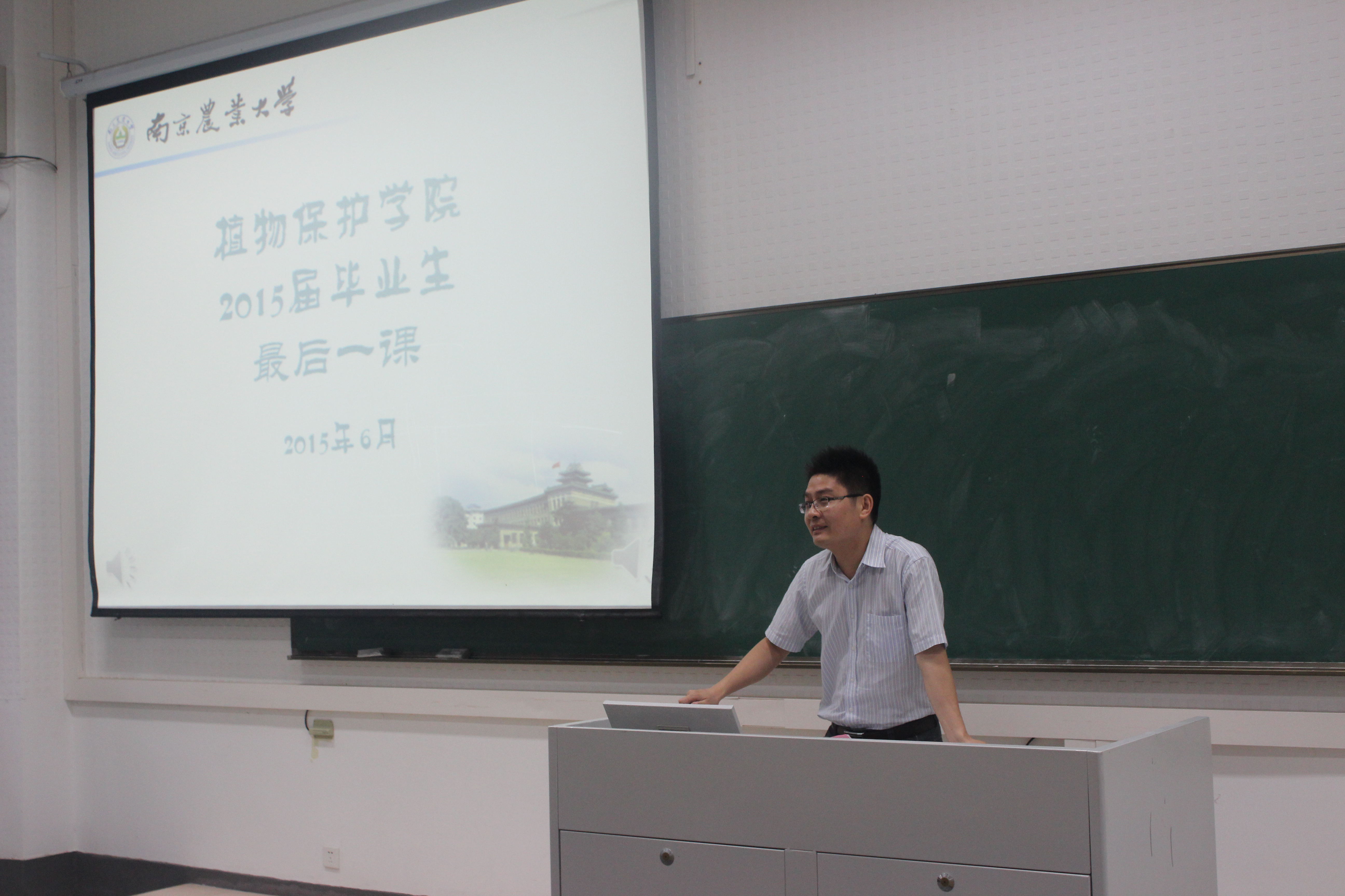 副院长、昆虫系教授刘泽文,昆虫系教授洪晓月,植物病理学教授窦道龙,植物病理学教授李红梅,副教授钱国良担任嘉宾出席课堂,院党委副书记黄绍华主持最后一课,学院2015届全体毕业生准时到课。
