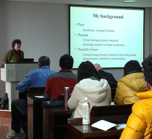 报告中,Obrycki教授以Native and Introduced Ladybird Species:Population Genetics and Ecological Interactions为题为我们详细介绍了生态学原理的研究方法。报告中,Obrycki教授所利用的新型实验方法令在座的生态研究学者们耳目一新。大家积极提问,教授详细为之解答,在热烈的掌声中,本次学术交流报告圆满落幕。