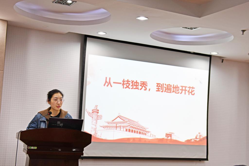 党委书记邵刚,党支部书记岳丽娜、蒋春号,辅导员李艳丹、李子成和罗舜文参加本次汇报会。