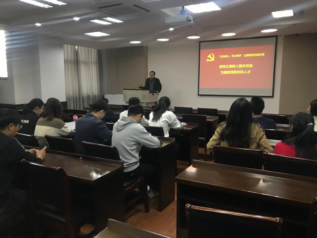 10月23日,学院党委书记邵刚在图书馆报告厅以“习近平新时代中国特色社会主义思想与立德树人”为主题讲授党课。党课围绕新中国成立70年来荒野探索、攻坚克难、深海破冰三个阶段,带领青年学生党员回顾中国共产党带领中国人民在社会主义建设道路上进行的艰苦卓绝、卓有成效的探索。党课分析了新时代党和国家面临的十大挑战,并从“12345”的角度,解读了习近平新时代中国特色社会主义思想的内涵。邵刚希望当代青年学子以“立德树人”为根本,不忘初心、牢记使命;正视差距、实干兴邦;好好学习、天天向上,牢牢结合专业,以自己的专业知识和能力,助力中国乡村振兴、助力实现中华民族复兴的伟大梦想。