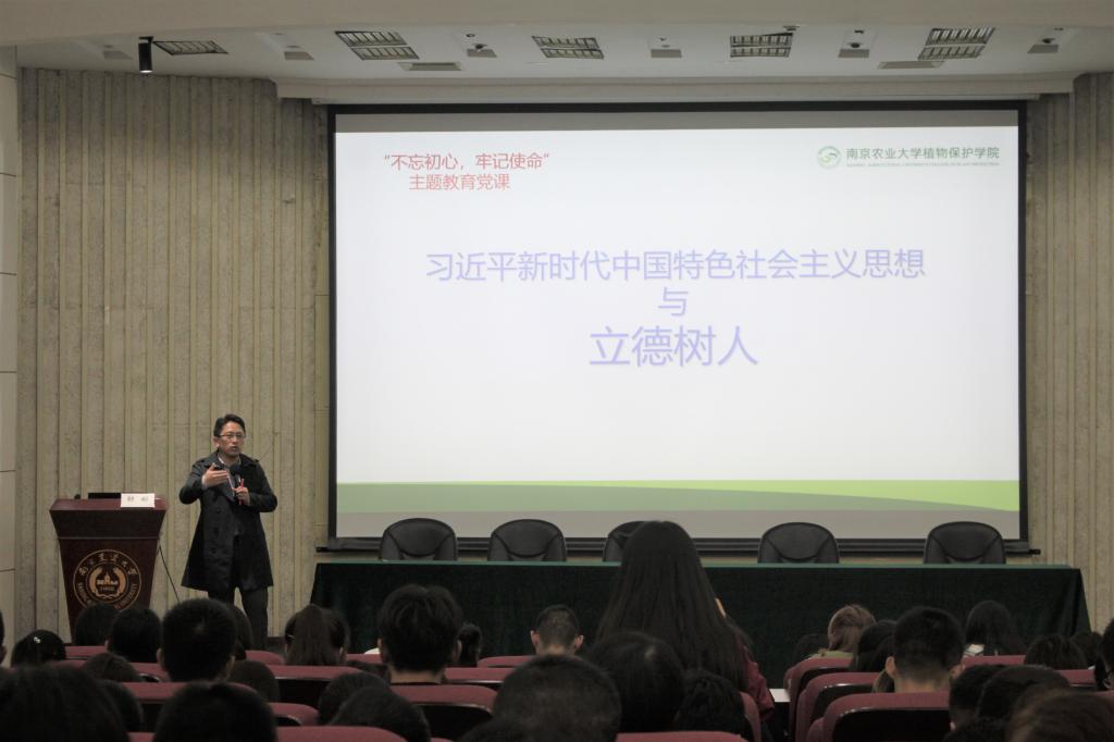 副院长张正光围绕“植保人的使命:持续推进学科建设,引领绿色农业发展”开讲党课。张正光指出,中国的现代化离不开农业农村的现代化,在新时代,农村是充满希望的田野、是干事创业的广阔舞台,而高等农业教育的理念就是坚持立德树人根本任务,为国培育新农科人才。作为植保学子,要以强农兴农为己任,明确学科建设引领绿色农业发展的重要性,踏踏实实做科研、勤勤恳恳做贡献,为推进农业农村现代化、确保国家粮食安全,为打赢脱贫攻坚战、推进乡村全面振兴贡献自己的力量。
