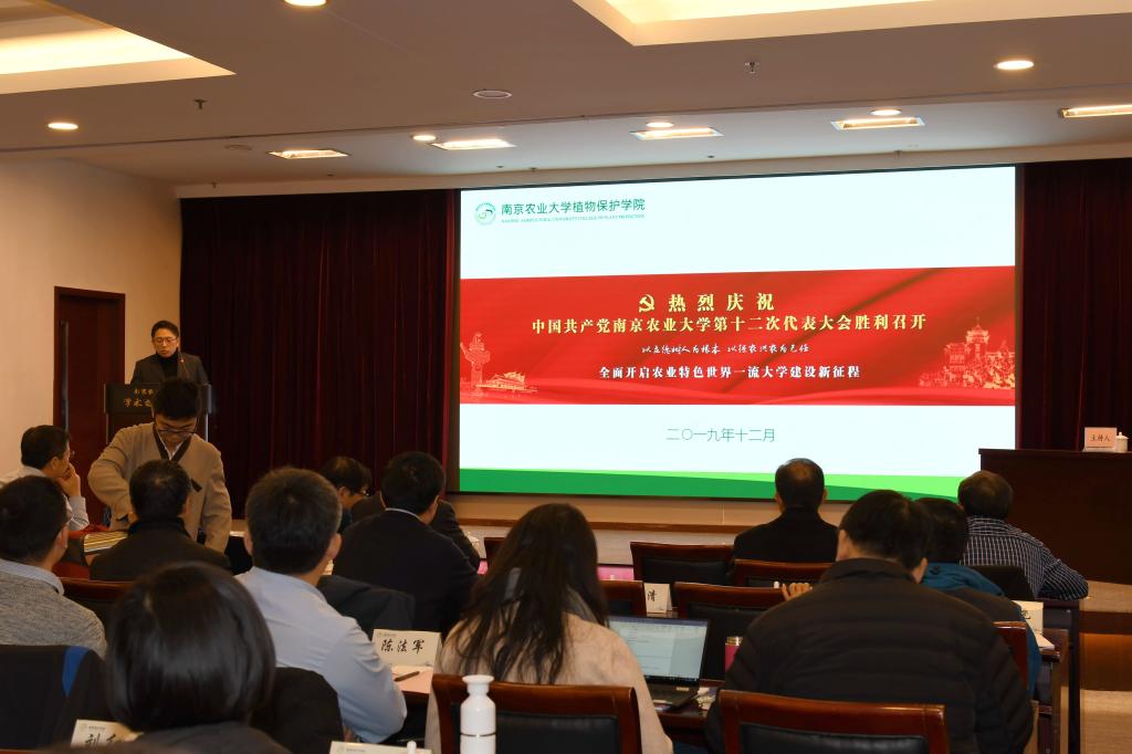 2019年度学术年会在翰苑举行。我校校友、江苏省植物保护植物检疫站站长田子华,退休教师代表沈晋良教授,学院领导班子成员、全体教职工以及部分研究生参加了年会。