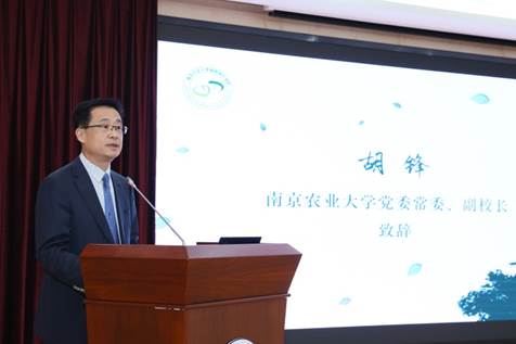 胡锋致欢迎辞,他代表学校向参加庆典仪式的领导、来宾和校友表示欢迎,他介绍了学校办学概况、植保学科历史底蕴及发展情况,提出两点希望:一是希望番号鸽