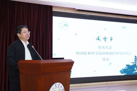 院长彭友良,中国农业科学院植物保护研究所所长周雪平分别作为兄弟院校代表和校友代表讲话。