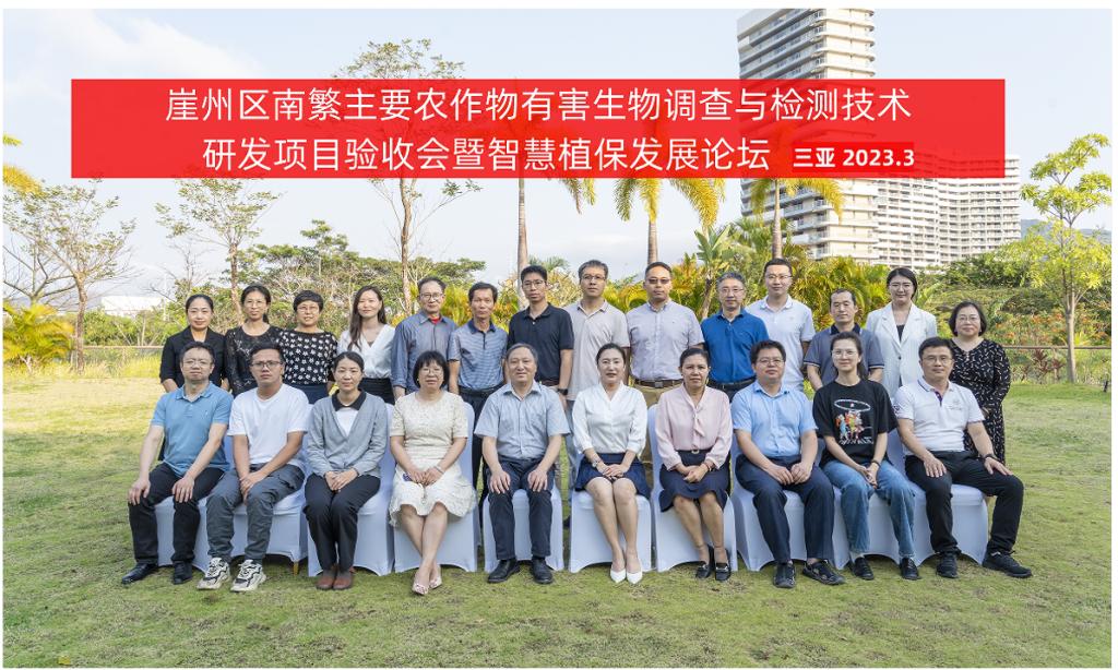和海南农科院植保所为主要承担单位的“崖州区南繁主要农作物有害生物调查与检测技术研发项目”结题验收会暨智慧植保发展论坛在三亚崖州湾科技城召开。三亚崖州湾科技城管理局研发部主任杨洋、全国农业技术推广服务中心病虫害测报处处长曾娟、番号鸽