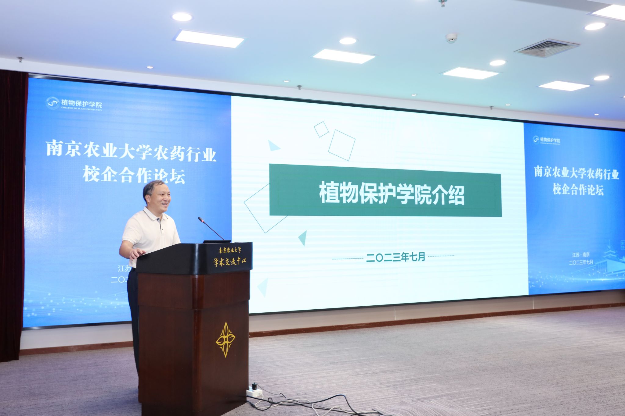在促进农药行业发展、培养农药行业人才等方面做出的重要贡献。他提出要坚持“四个面向”,校企协同攻克农药创制的“卡脖子”难题;构建校企协同育人体系,培养符合新时代要求的“双创”人才;强化命运共同体意识,搭建好交流互动和科技合作两个平台,进一步完善社会化服务合作机制,促进校企合作走深走实、共赢共荣。他希望以此论坛为契机,进一步加强校企合作,推动农业强国建设和绿色农业发展,提升中国农药行业的国际影响力和竞争力。