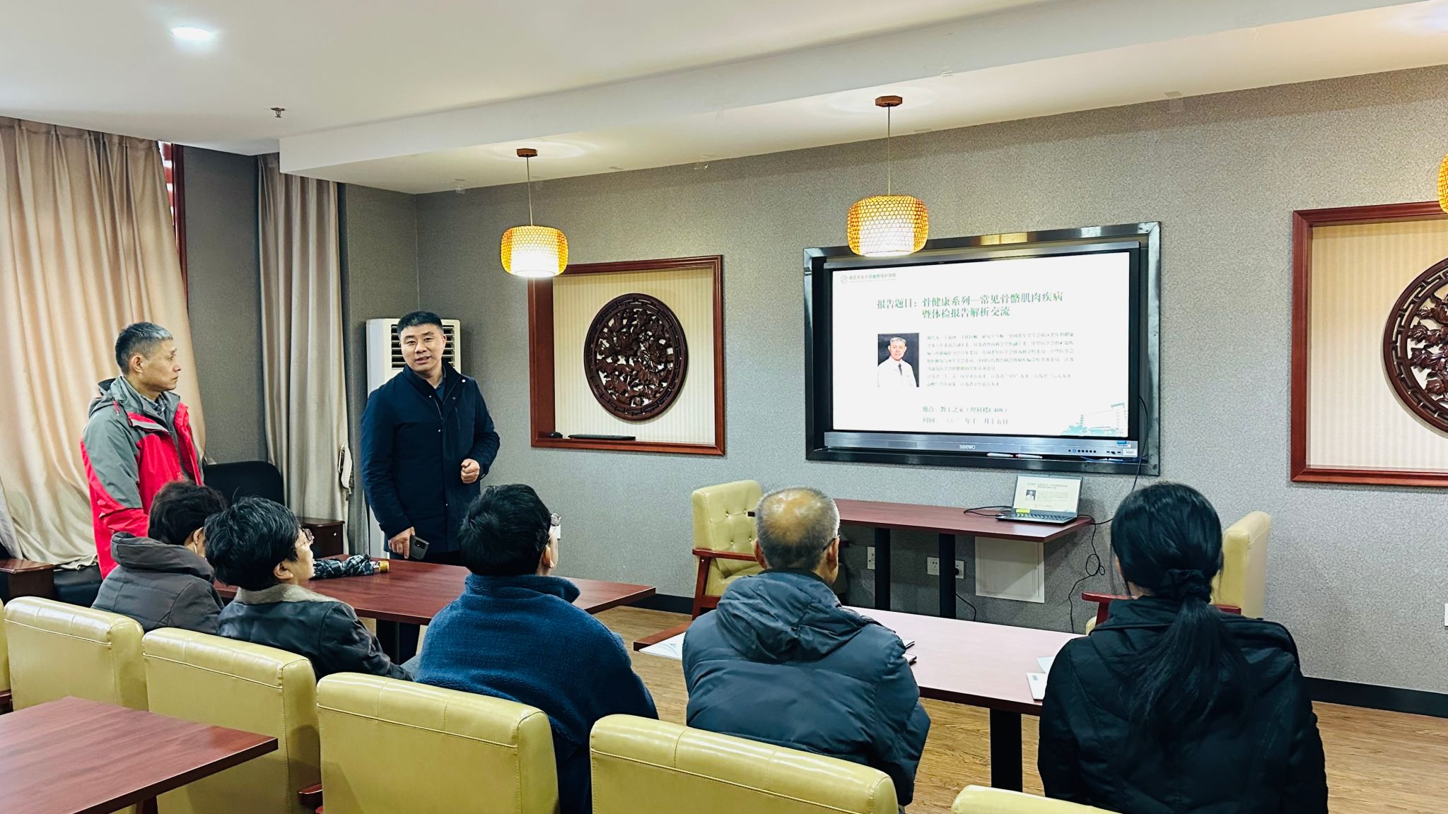 邀请鼓楼医院王银河主任医师以“骨健康系列—常见骨骼肌肉疾病”为题作专题讲座,同时针对近期教职工体检报告进行面对面现场交流和指导。