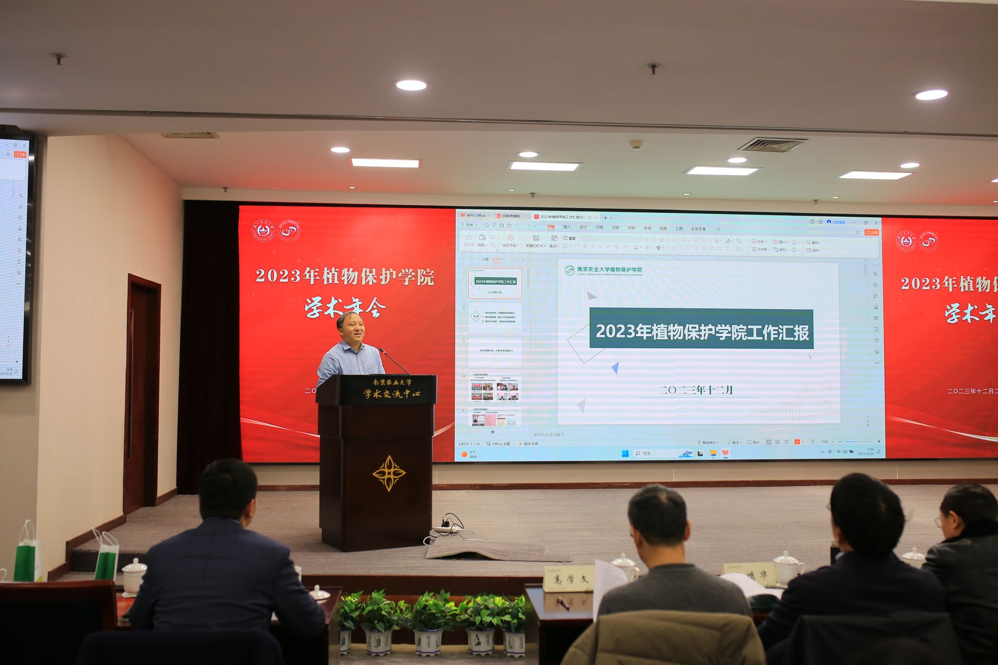 张正光代表学院作2023年度工作总结报告。一年来,学院锚定“十四五”发展目标,以高质量党建为引领,以立德树人为根本,以高素质人才为关键,坚定不移推动学院高质量发展,扎实推进各项工作再上新台阶。本年度学院党委荣获省党建工作创新三等奖、校党建工作创新一等奖,1个党支部获得推报第四批全国党建工作样板支部,王源超获全国创新争先奖,新增国家四青人才5人,入选农业农村部神农英才青年人才2人,博士后团队获全国创新创业大赛金奖,胡白石获2023年校师德标兵。学院获批主持国家重点研发计划 2 项,新增国家自然科学基金26项,发表SCI论文(截至11月底)187篇。