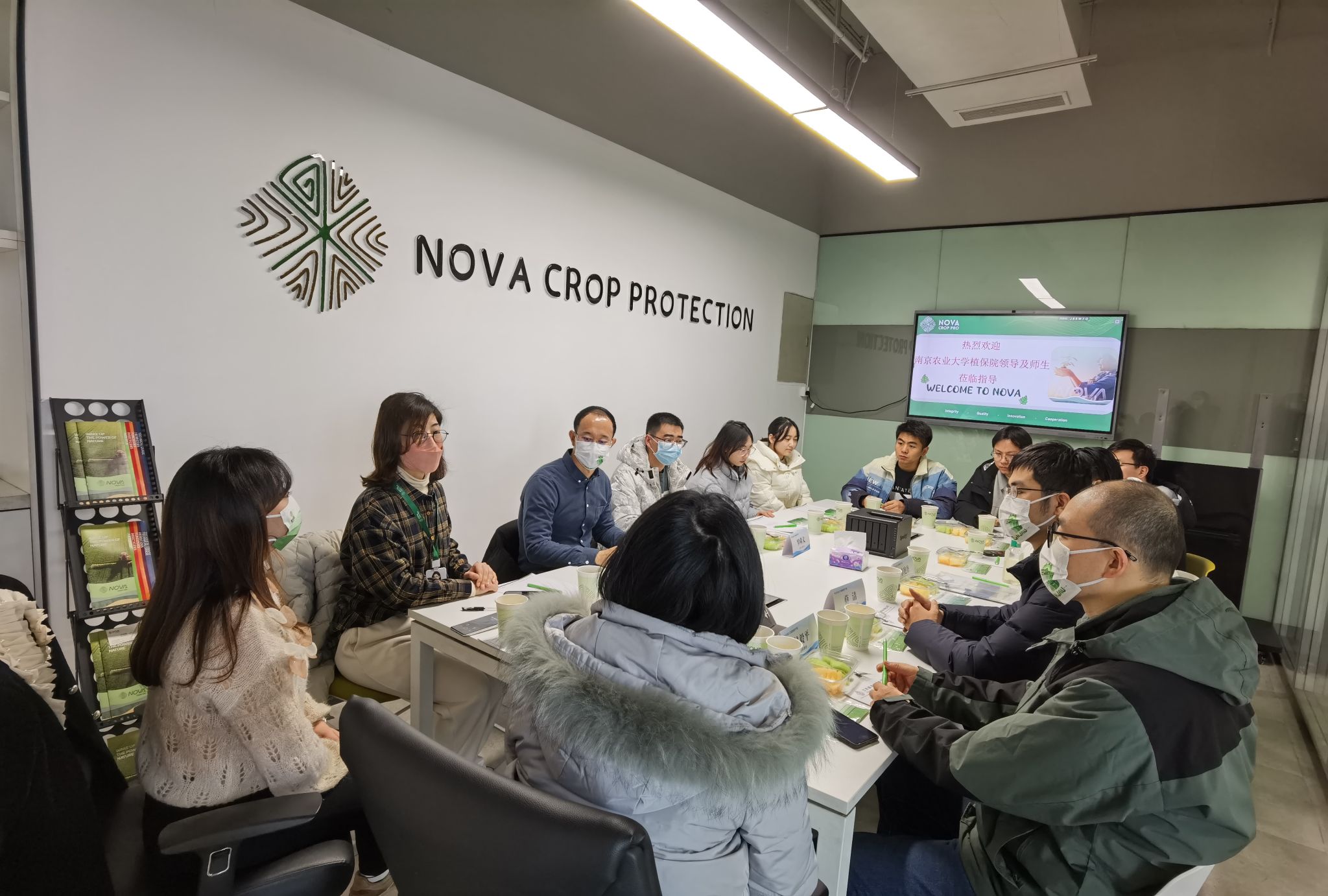 党委副书记吴智丹带领学院农药系侯毅平教授、昆虫系刘鹏程教授、植物病理学系薛清副教授及辅导员、学生一行12人,走访江苏嘉禾植保有限公司,并与公司CEO郑萌萌、COO郭楠等开展座谈交流。
