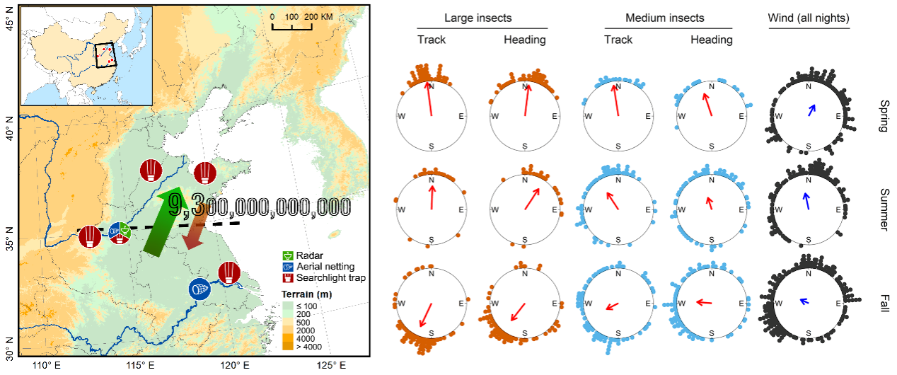 原文链接:Huang JR, Feng HQ*, Drake VA, Reynolds DR, Gao BY, Chen FJ, Zhang GY, Zhu JS, Gao YB, Zhai BP, Li GP, Tian CH, Huang B, Hu G*, Chapman JW*. 2024. Massive seasonal high-altitude migrations of nocturnal insects above the agricultural plains of East China. PNAS, //doi.org/10.1073/pnas.2317646121