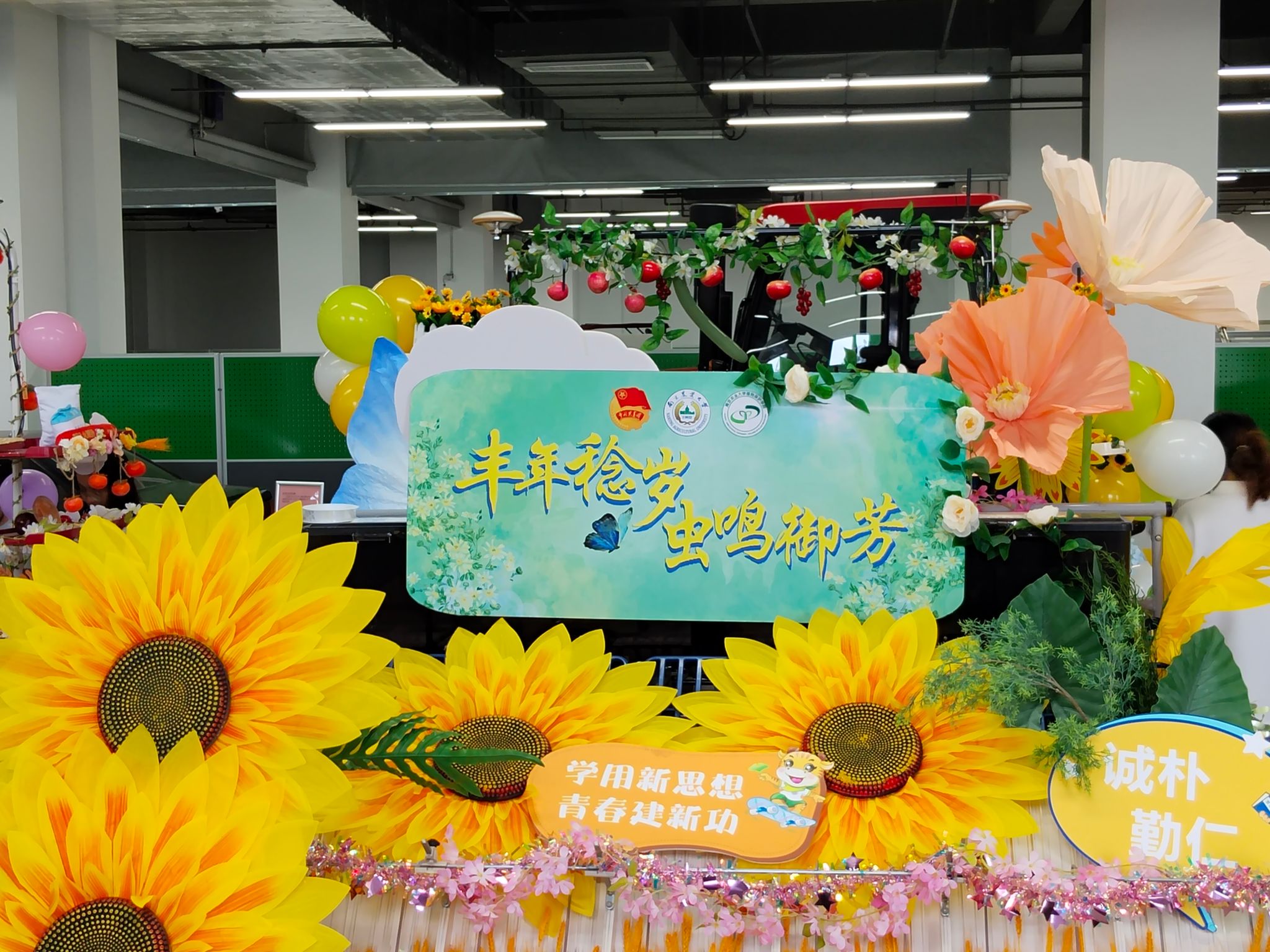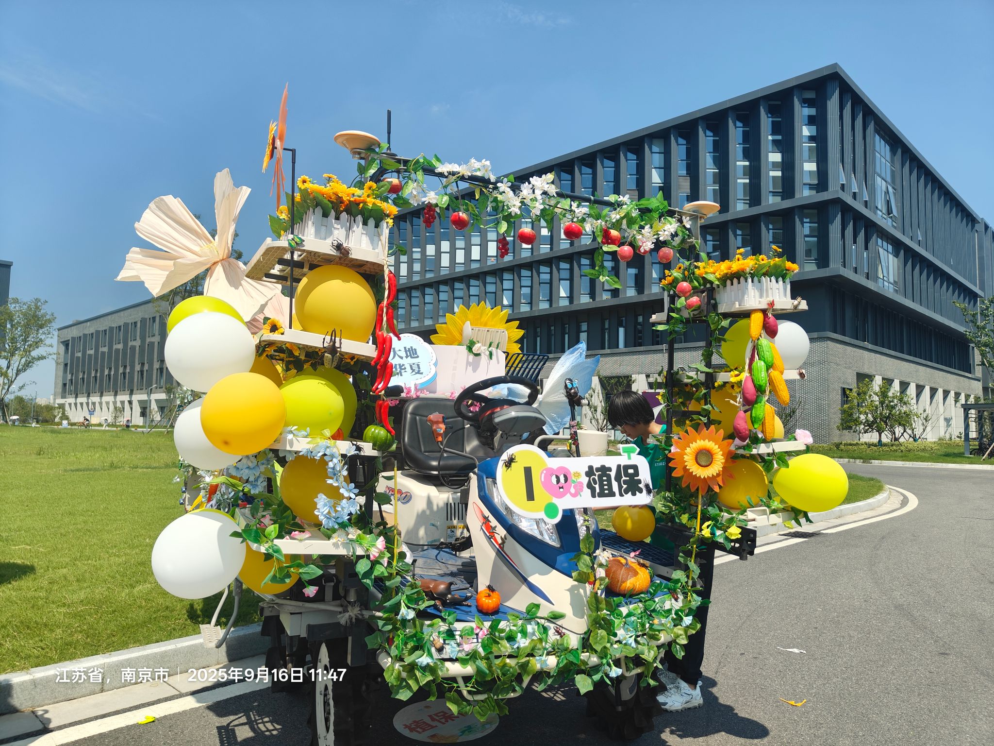 的“丰年稔岁·虫鸣御芳号”花车,以“植保学科+丰收庆典”为核心,将植保人的专业浪漫融入每一处细节:向日葵笑靥迎客,麦穗在车侧呈现“麦浪翻滚”之态,葡萄堆成丰收小山,更有锹甲、蝴蝶等昆虫标本藏于花车,以静默的方式讲述农作物与自然生态相生相护的关系。