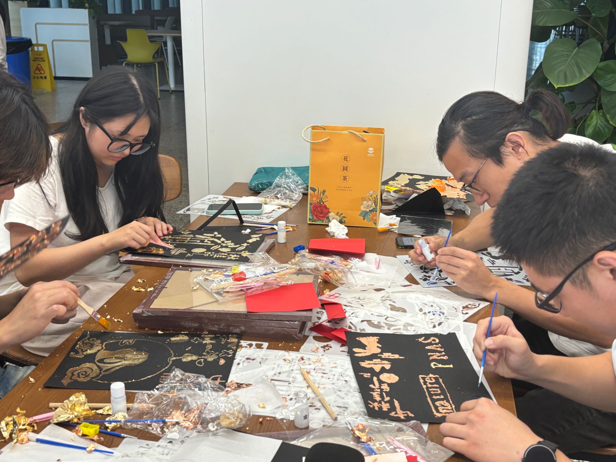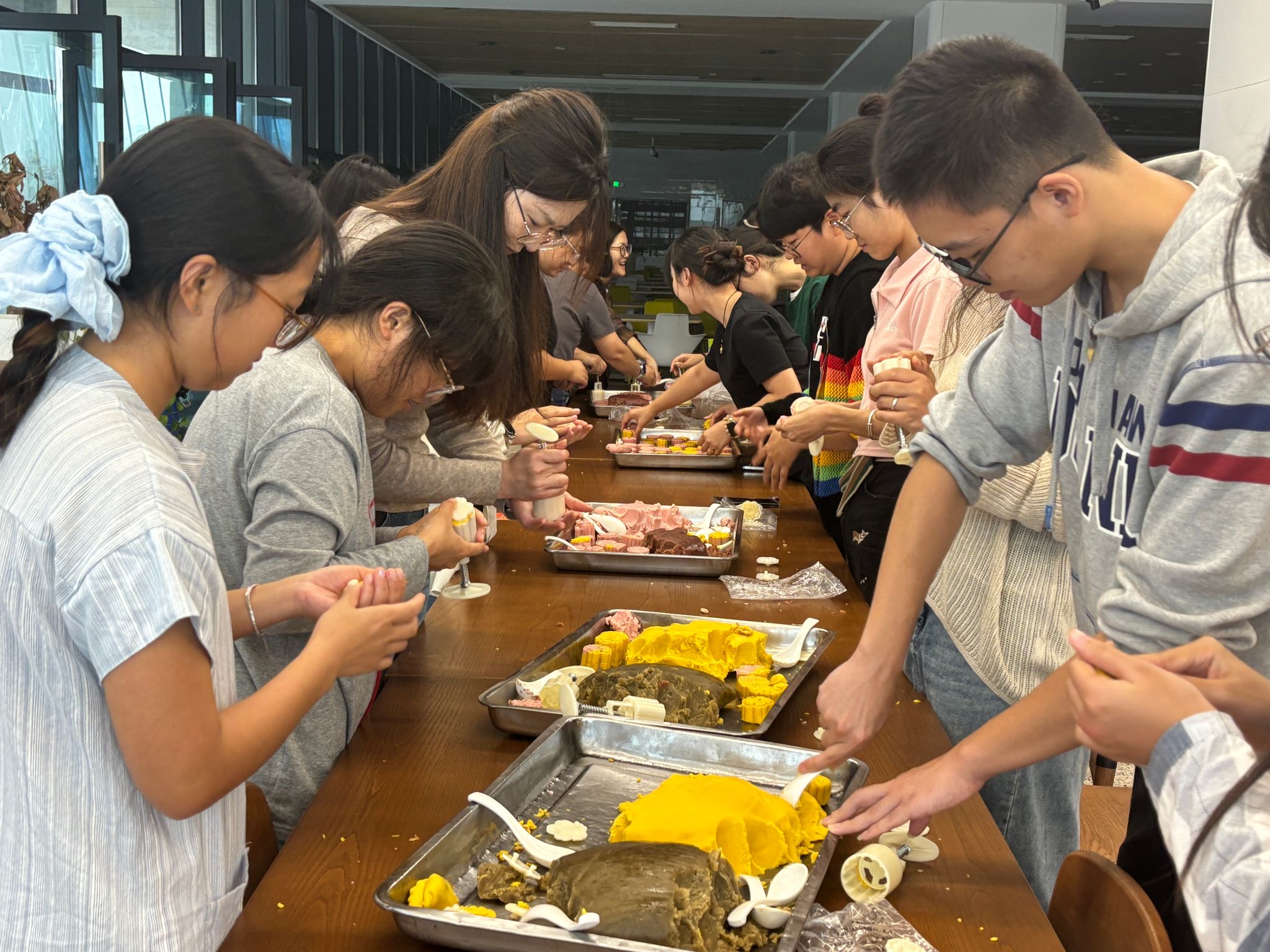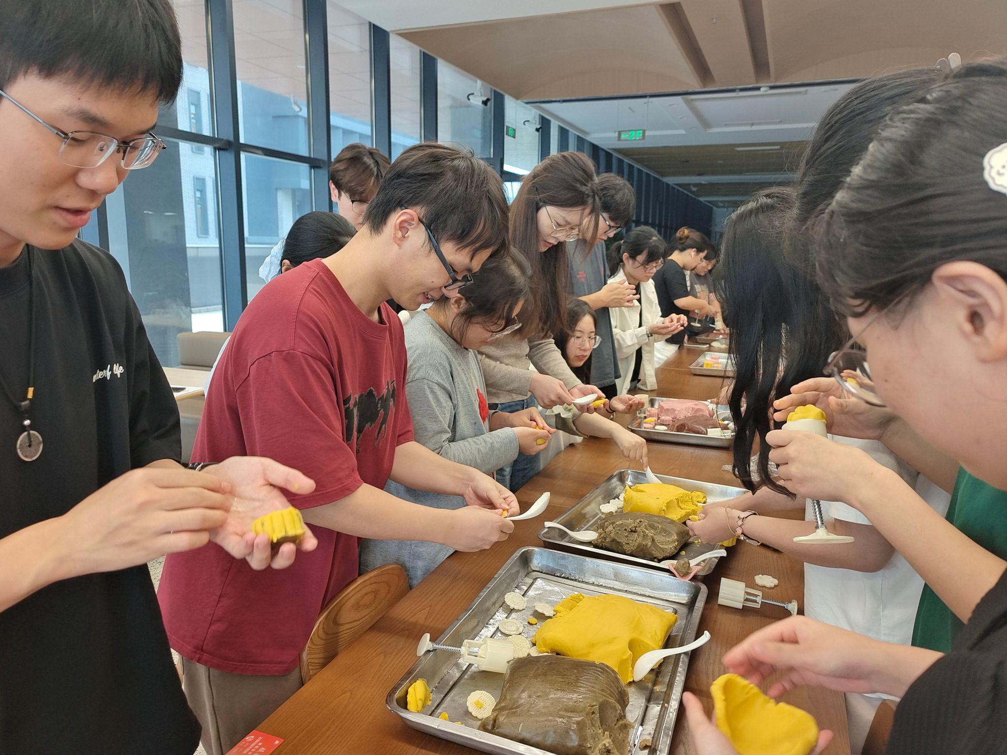9月29日在滨江校区朴院食堂组织开展了“月满人间,情聚中秋”中秋活动。学院教师代表与三十余名同学欢聚一堂,共同拓印非遗烧箔画、制作月饼,共享美好佳节。