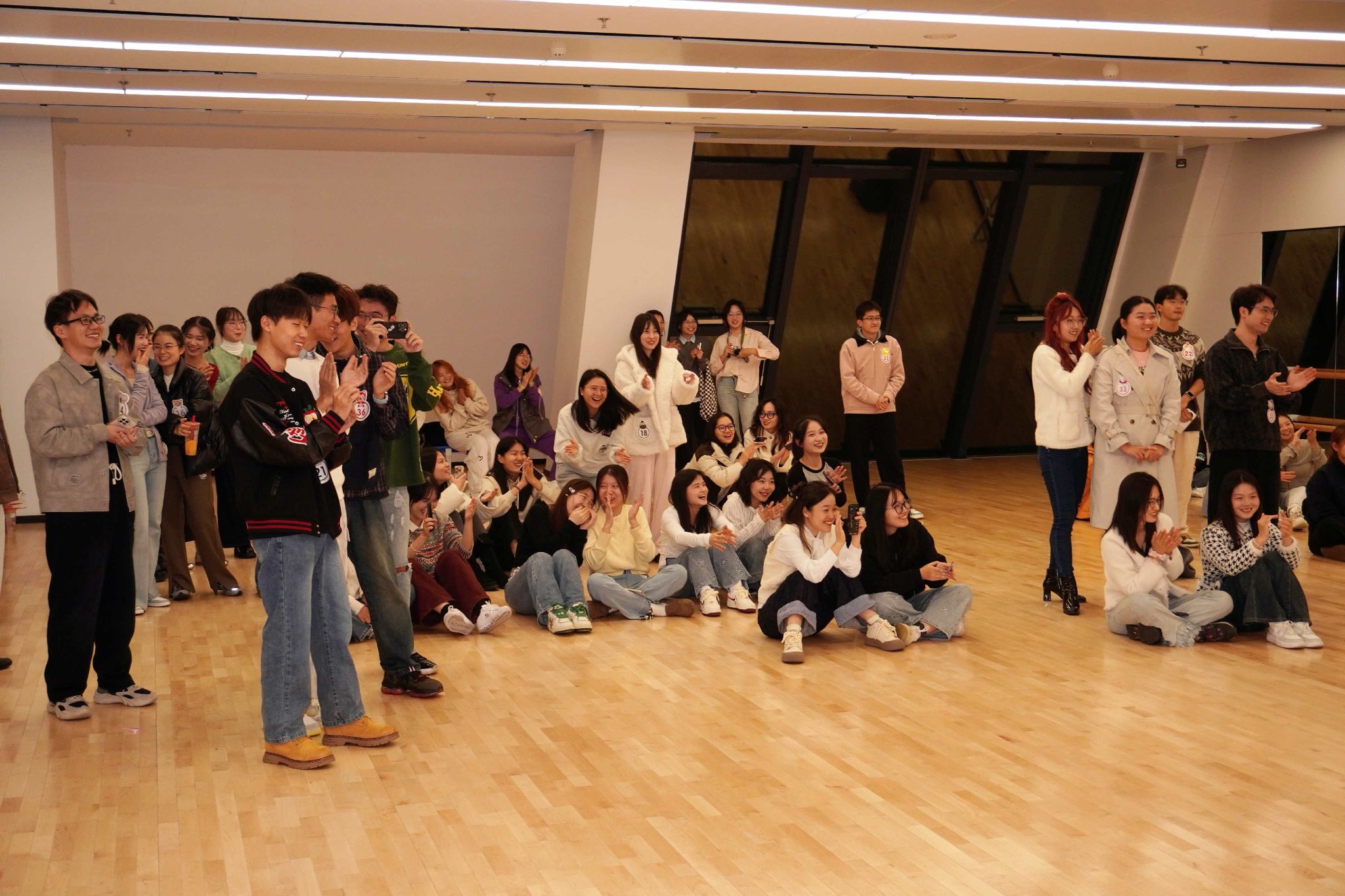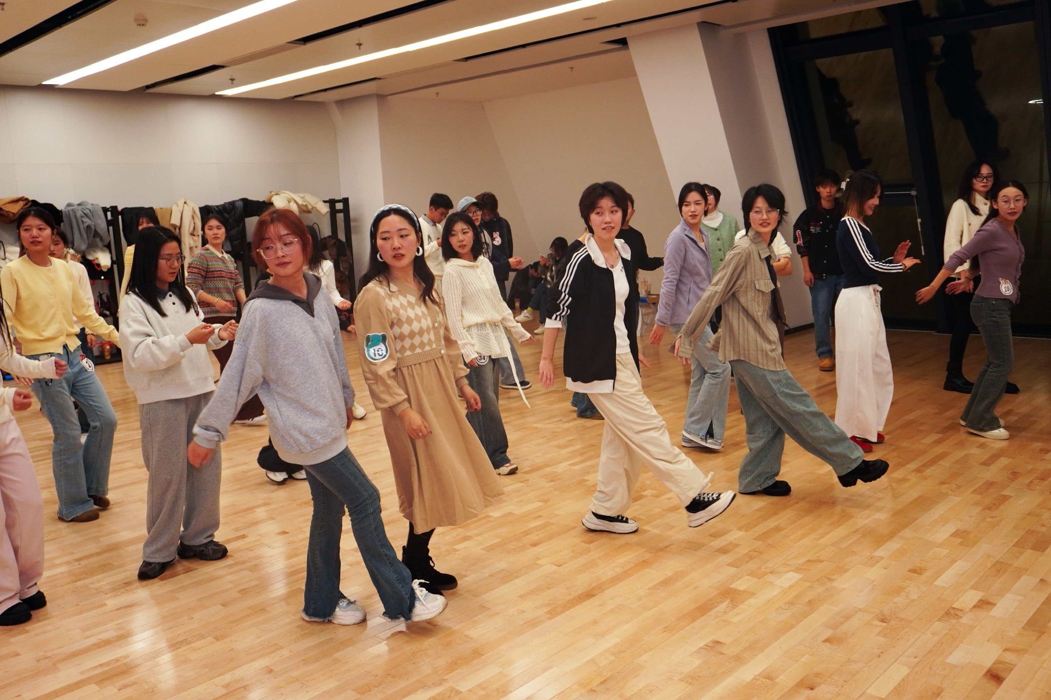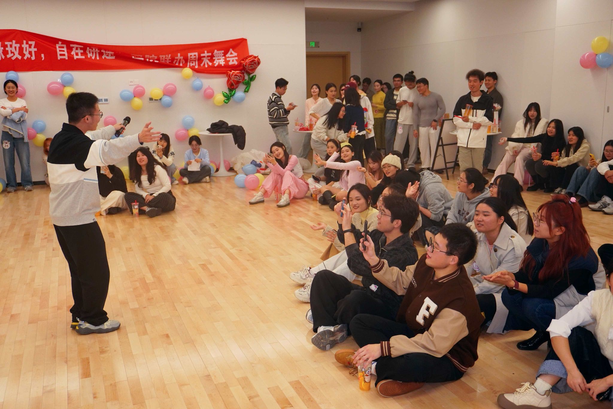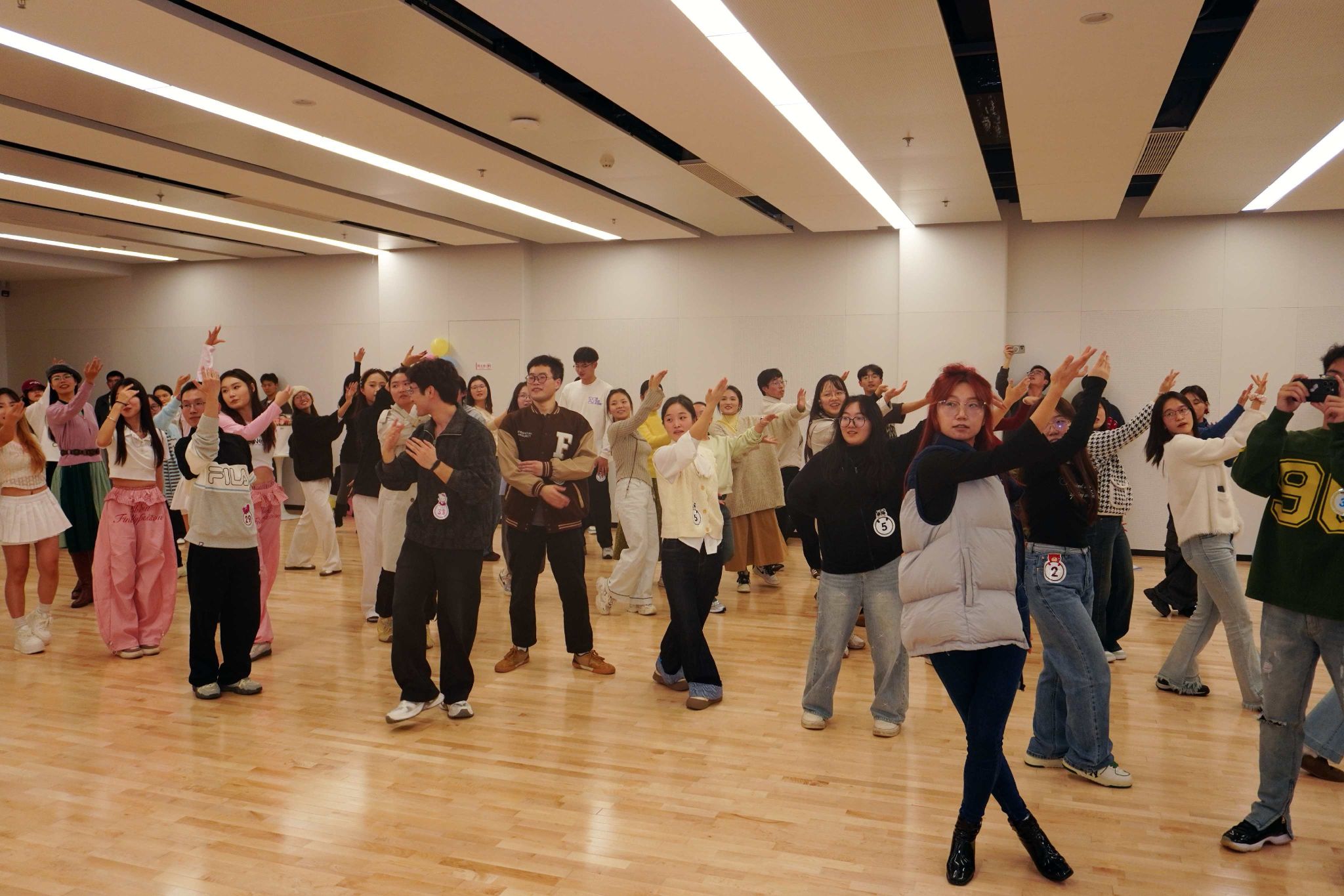 研究生易琦玮和李想同学耐心细致的《爱的华尔兹》教学环节,许多零基础的同学勇敢地迈出了第一步。他们携手旋转,步履从生涩到流畅,自信与优雅在舞步中悄然生长。