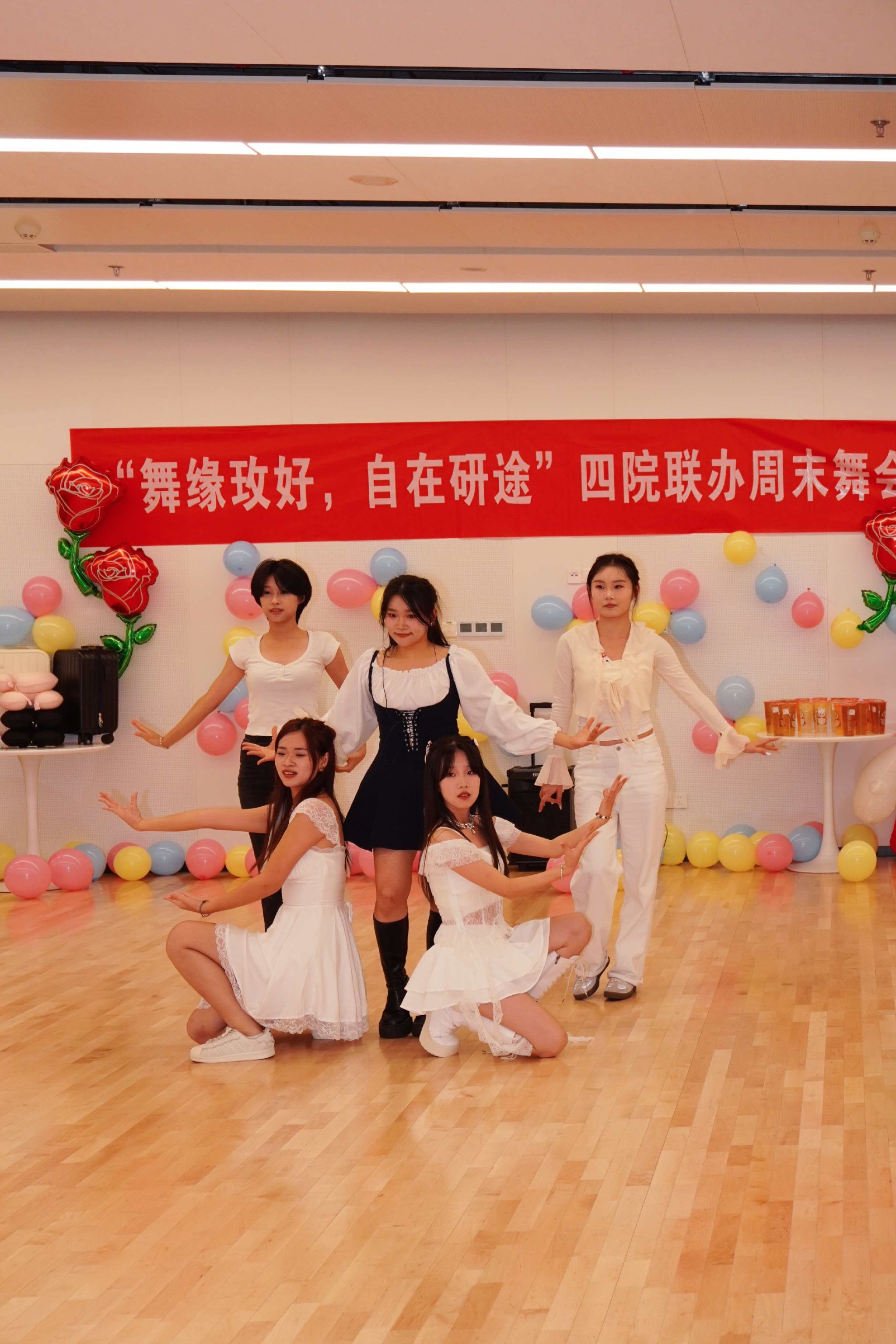 至此,“舞缘玫好,自在研途”四院周末舞会圆满落幕。这个夜晚,同学们不仅收获了欢乐与礼品,更很好地诠释了“无需等待谁的许可,不必迎合任何眼光”,勇敢地展示自我,结识挚友。愿这支秋夜的玫瑰,永远绽放在每位参与者的“研途”记忆之中,芬芳而耀眼。