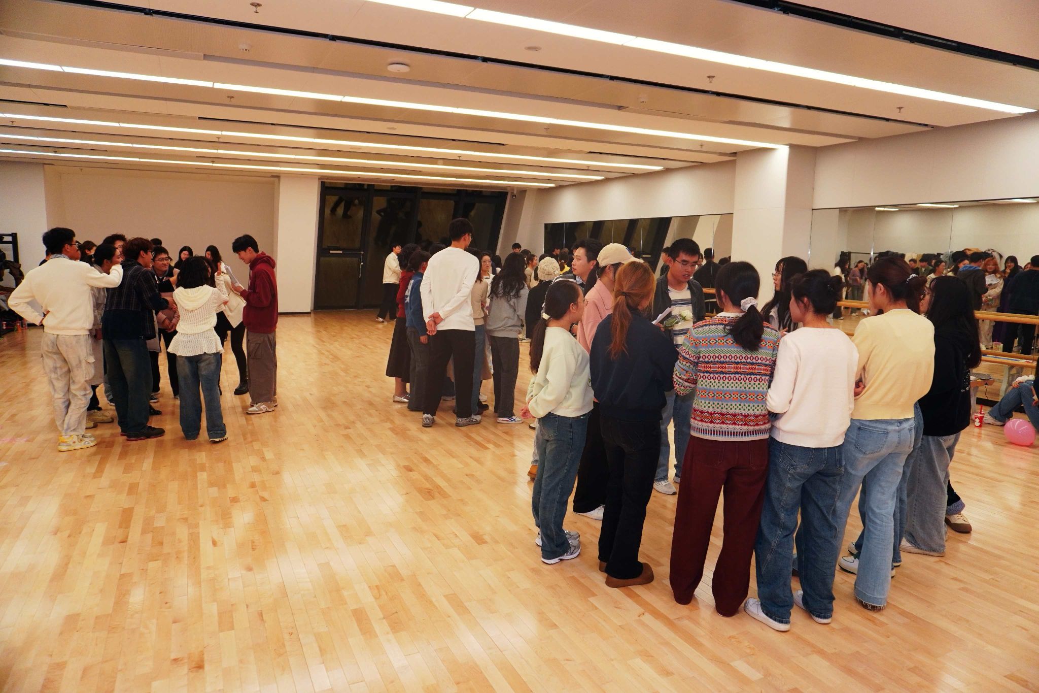 舞会现场以象征爱与美好的玫瑰花装点,与“舞缘玫好”的主题巧妙呼应,更为这场秋夜聚会注入了满满的活力。同学们或自带舞伴,或通过领取专属号码牌开启“惊喜盲盒”。