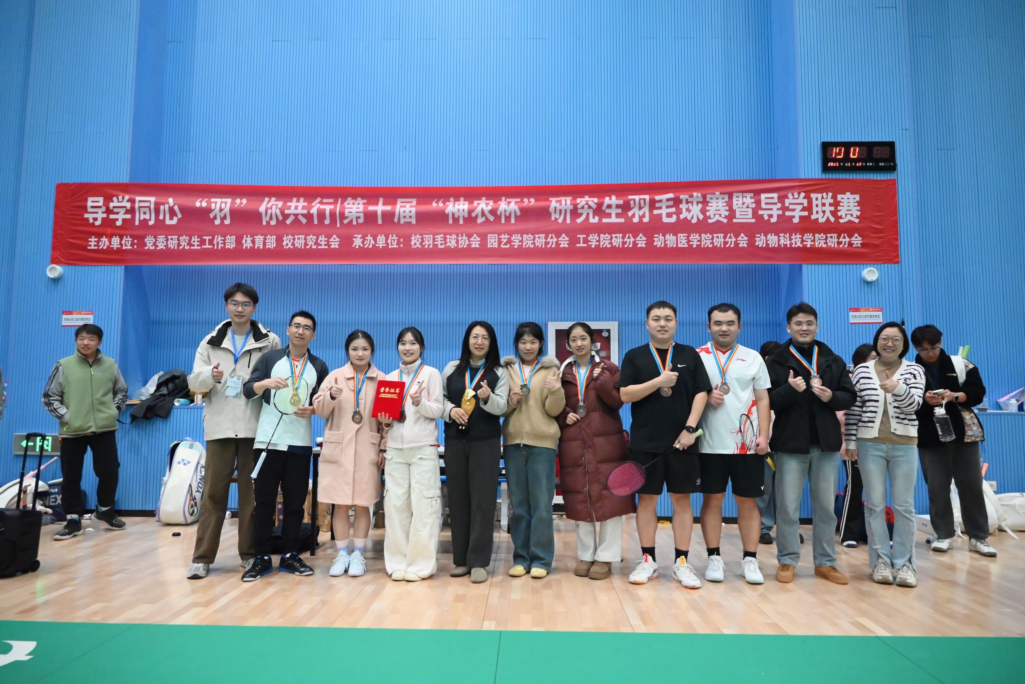面对实力强劲的园艺学院,比赛陷入胶着。女双凭借细腻的网前小球和默契的跑位逆转取胜;男双顶住压力,在关键分争夺中稳扎稳打,拿下决胜场。最终,番号鸽