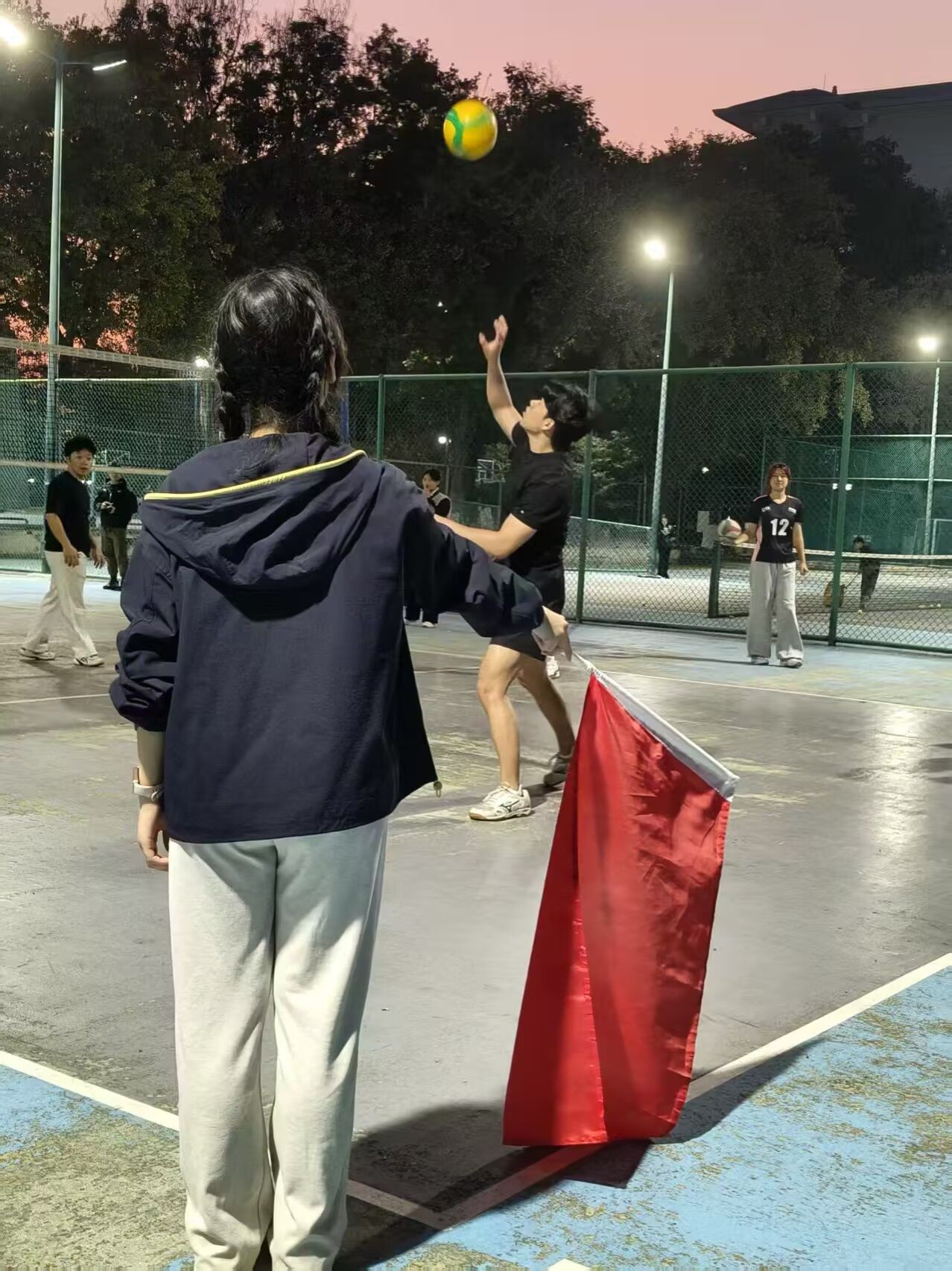 一头扎进排球队,从垫球打飞的“菜鸟”,到跟着学长姐练发球、跑位,看着通红的手臂,汗水中都攒满了热血的归属感。我还参加了排球裁判培训,在新生杯赛场上执裁,内心满是自己又掌握一项技能的骄傲。