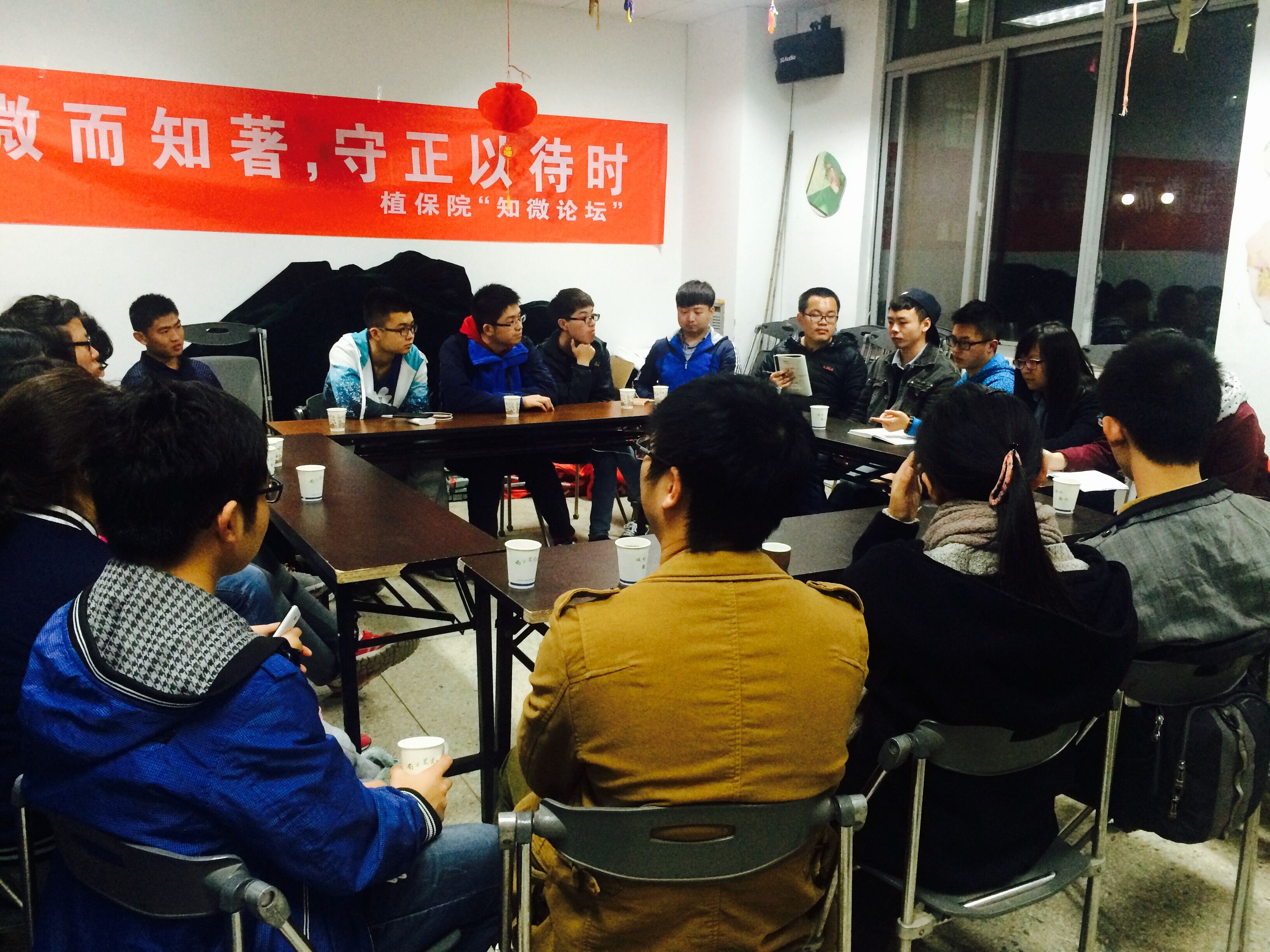 活动接近尾声时,学习部部长倪旭阳指出:此次交流的意义在于能继承前辈的良好风气、学到更多的东西,并用此来规范我们的言行举止,并鼓励参与者畅谈自己的观点,将“知微论坛”打造成一个展现南农学子思想的平台。