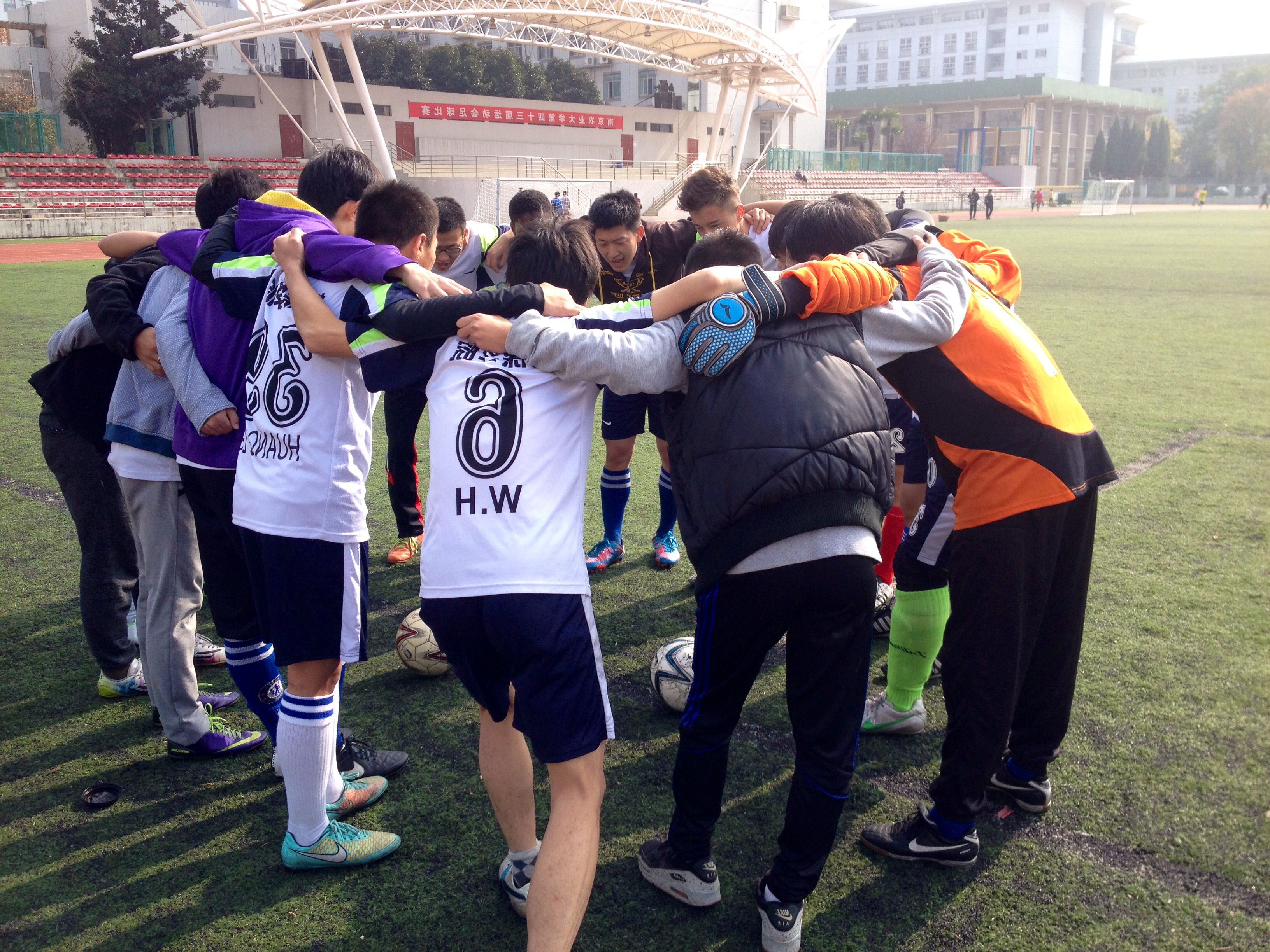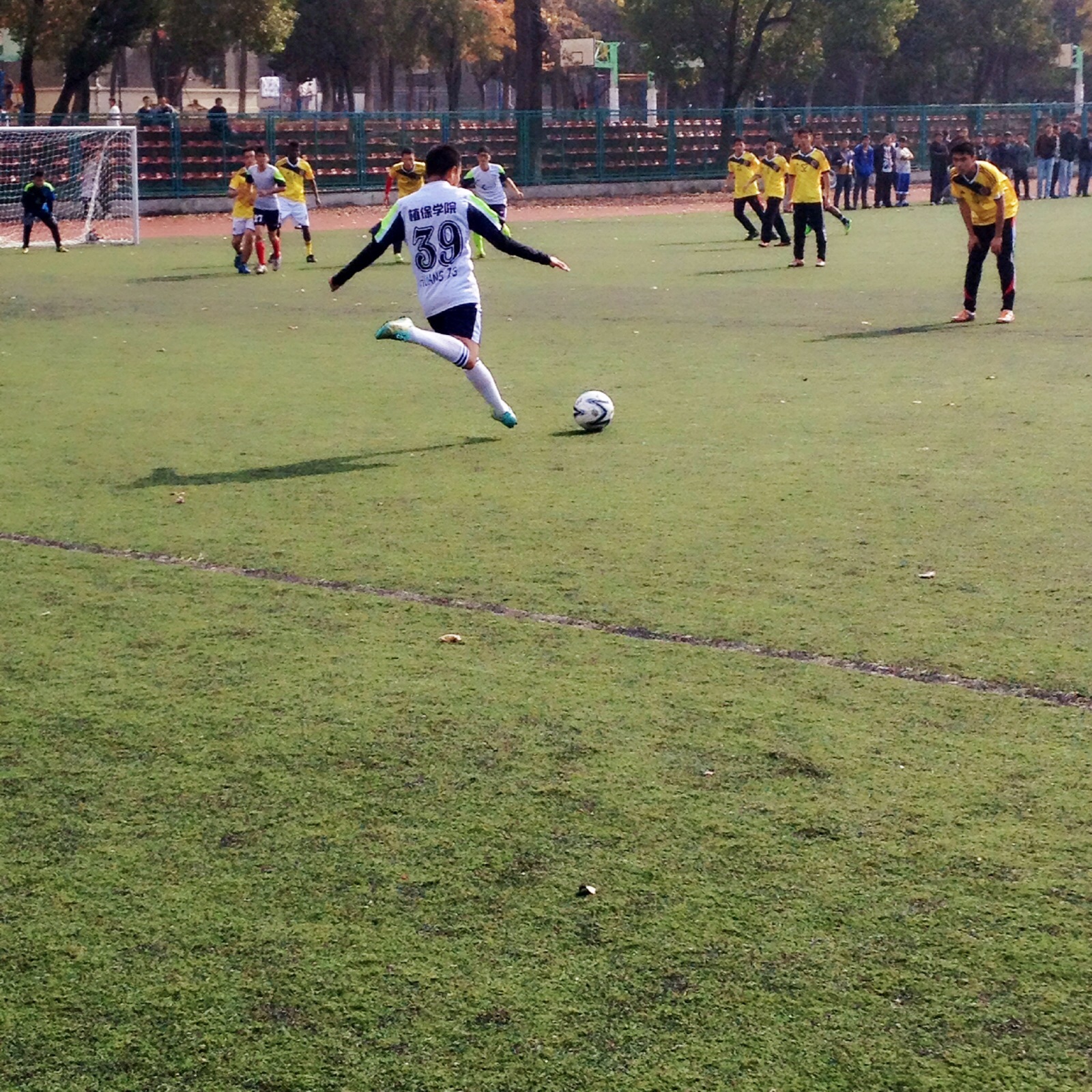 在学校田径场北半场上迎战食品院,双方队员热情高涨,畜势待发,经过激烈比拼,番号鸽