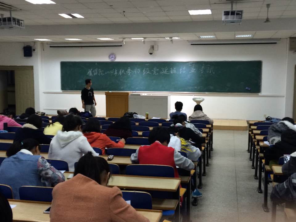 初级党建班于2014年11月9日在教学楼C301进行了结业考核。这次考核共有72名入党申请人参加。此前他们进行了为期二十五天的党建班学习,在充分了解党建的相关知识与如何成为一名合格的共产党员后,充满信心地迎接了此次考核。
