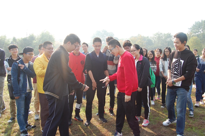 本次活动由多个趣味性强的小游戏组成。首先是“蟹王蟹后”,通过石头剪刀布决出胜负,胜者可获得小零食一袋,而输的则要用方言朗诵古诗。紧接着的“一块五毛”,男生女生通过抱团凑出对应钱数,同学们的情绪很快便被调动起来。随后所有人分成五组,分别由邵子恺、芦笛、袁瑞忠、温伟东和丁浩毅带队,各组男女搭配,参与竞技。通过几人几脚、你划我猜、定向越野三个环节的比拼,最终温伟东带领的第四组勇夺第一。每个小组都在活动结束后获得了精美的奖品。