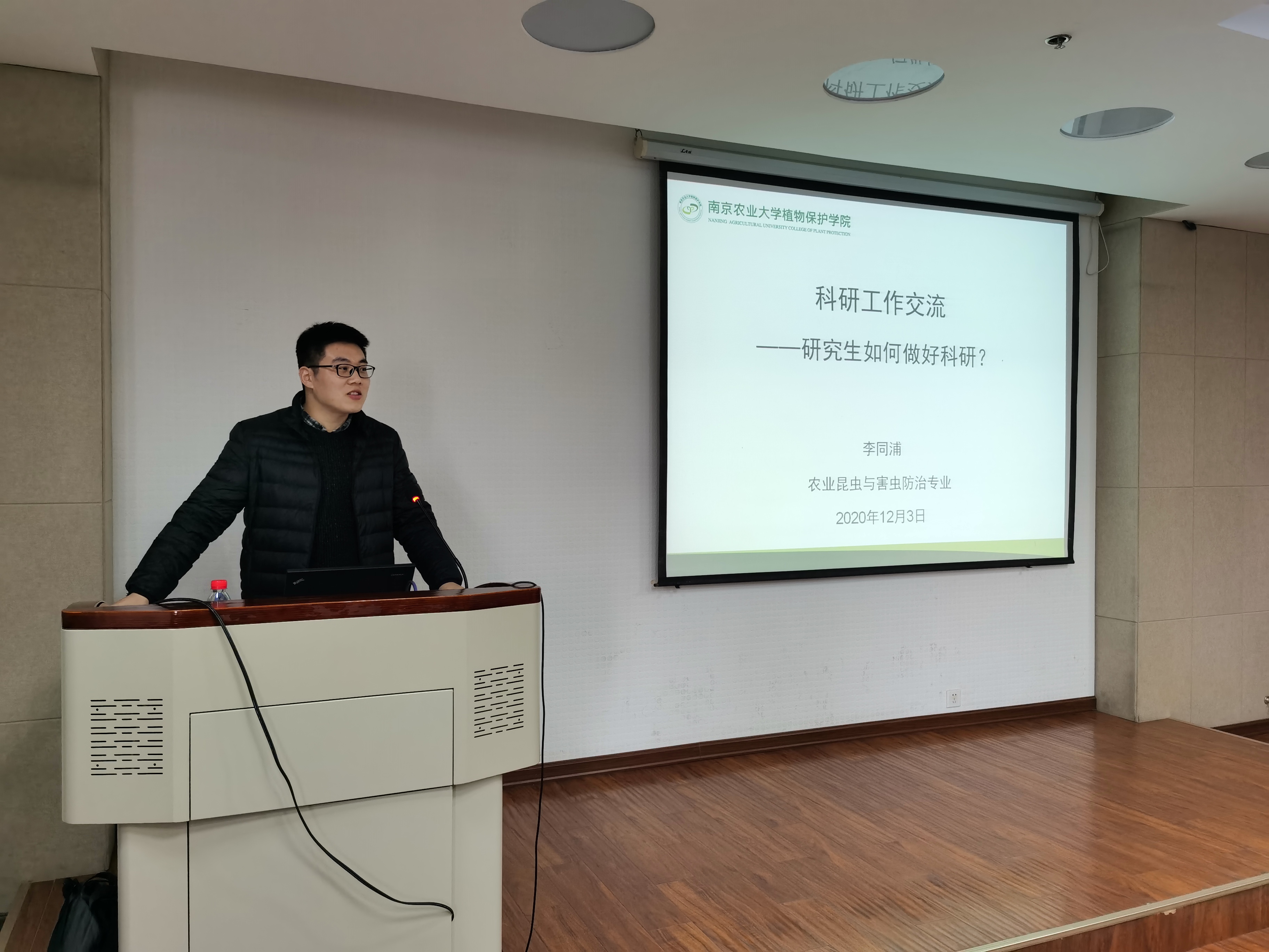 专场)在理科楼C305成功举办,植物病理系王利媛、昆虫学系李同浦、农药学系李连山等三位博士研究生进行分享、交流,100余名研究生参加了本次活动,现场座无虚席。