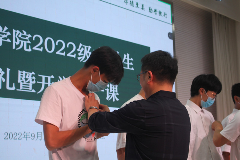 开学典礼最后,邵刚、张正光为五个班的新生代表佩戴院徽,将“厚德至真,勤学敦行”的植保文化与精神传递给新生,欢迎新鲜血液的加入,寄语新生争做爱国为农的新型高素质植保人。