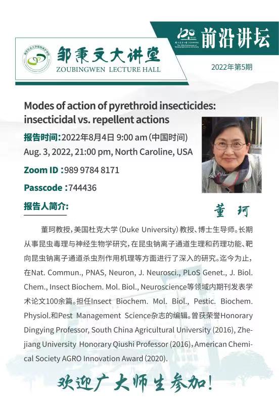 百廿南农-植保学术系列报告:Modes of action of pyrethroid insecticides: insecticidal vs.repellent actions