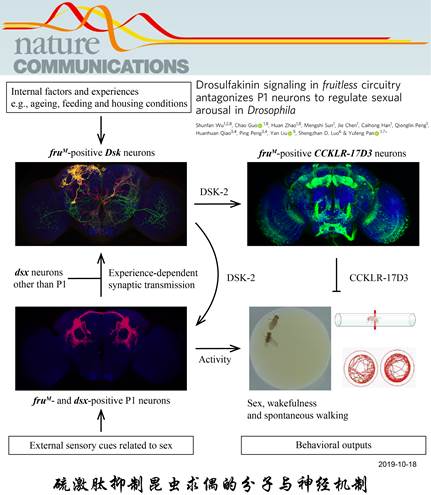 研究结果“Drosulfakinin signaling in fruitless circuitry antagonizes P1 neurons to regulate sexual arousal in Drosophila”于2019年10月18日以长文形式发表在Nature Communications杂志上。番号鸽