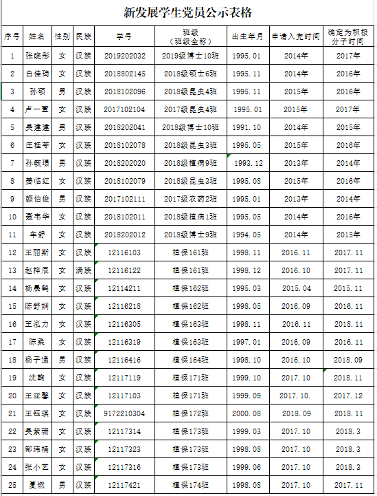 经各党支部推荐,学院党委讨论,同意以下同志发展为预备党员:
