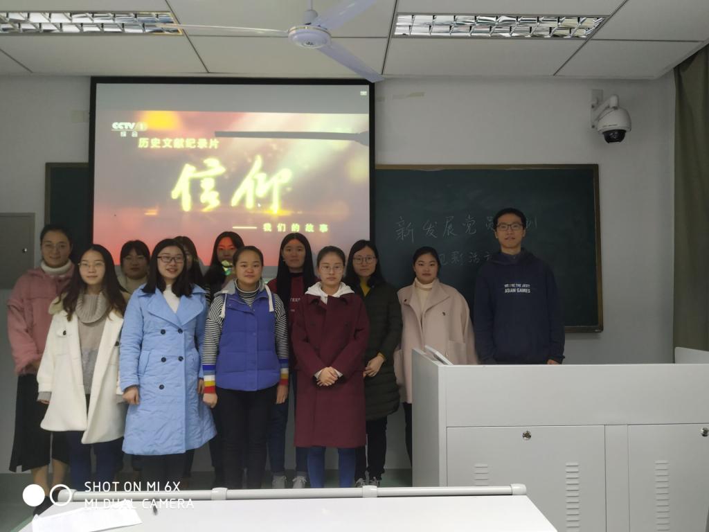 全体新发展党员在主楼315观看历史文献纪录片《信仰》。
