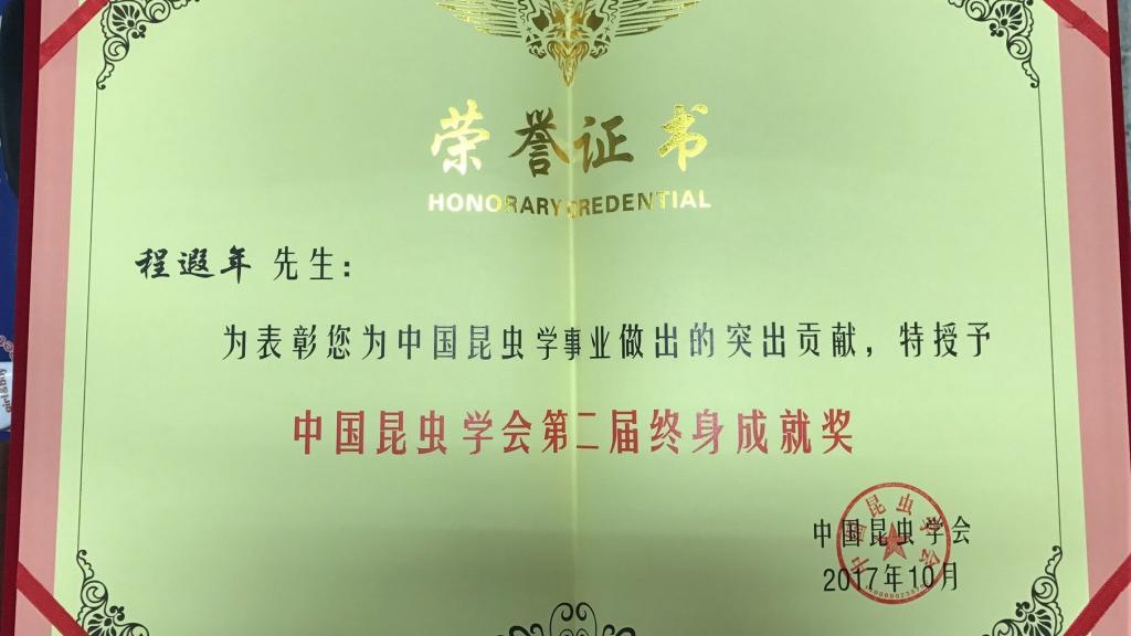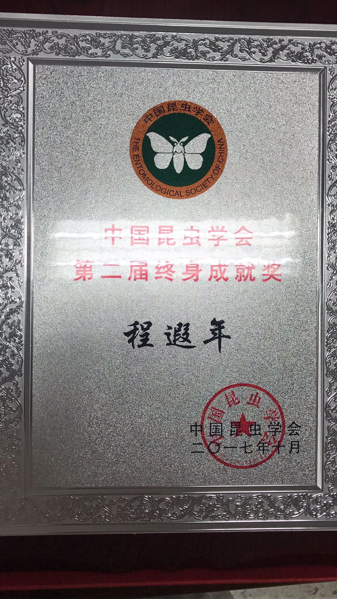 程遐年教授获得了第二届中国昆虫学会终身成就奖。